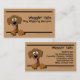 This cute brown cartoon dog business card comes in a pack of 100 and features a cartoon dog face and paws. Looks like a puppy or dog waiting for you when you get home. Makes a great card for your dog walking business, or for dog groomers, dog sitters, or veterinarians. You can also use it for your personal information if you just love dogs! Customise by adding your name and business name on the front. The template makes it easy to personalise with your information on the back as well. Don't like the colour? How about plain white?