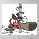 Cartoon Dog Tangled Around Pole with Leash Poster