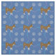 Cute cartoon style Chihuahua stands against a background of blue with paw prints and tracks in grey, pink and blue.