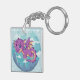 This acrylic keychain is shown with a cute cartoon dragon print.
