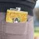 Cartoon eggplant with big eyes green hair 2 hip flask