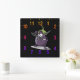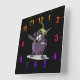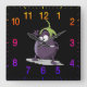 Cartoon eggplant with big eyes green hair 2 square wall clock