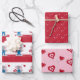 Cute pink red and white wrapping paper sheets with patterns of a cartoon elephants and hearts . Perfect for Valentine's Day or for baby showers .