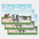 Cartoon Farm Animals With Green Grass And Blue Sky Wrapping Paper Sheet