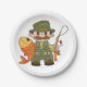 Cartoon Fisherman with Big Catch Funny Fishing Paper Plate