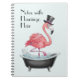 Embrace sophistication with our elegant flamingo notebook, where whimsy meets style. Adorned with a dapper flamingo in a monocle, luxuriating in a bath of splashes, this notebook is designed to inspire your notes with flamingo flair. Perfect for jotting down thoughts, sketches, or daily musings, it's a charming addition to any stationery collection.