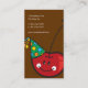 Cartoon Fun & Red Cheeky Cherries With Party Hats Business Card