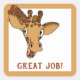 A cute giraffe sticker with a happy smile, shown with the words Great Job, you can change the text to suit your needs. Great for encouragement for kids, for homeschool papers, online learning motivation and more.