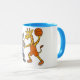 Cartoon giraffe & rhino playing basketball mug