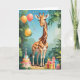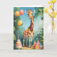 Cute character at celebration party. Blank for your own greeting and personal message inside.