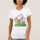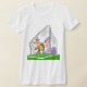 This is a fun cartoon style design of a goalkeeper. This goalkeeper has a mean determined look on his face as he stands in the soccer goal. The funny thing is he is holding a net to try and stop the balls but has failed as there is several soccer balls behind him. This cartoon goalkeeper design looks great on this womens t-shirt. Perfect for yourself or as a gift