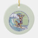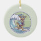 Cartoon goat on a surfboard ceramic ornament