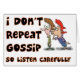 A humourous look at gossip. A cartoon of two women one whispering in the others ear. The words I don't repeat gossip so listen carefully surrounds them. A great card for any occasion.