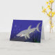A smiling Great White Shark greeting card, featuring original cartoon art of a shark swimming underwater, along with bubbles and seaweed. Send this card to kids and adults who love sharks, because sharks are awesome!