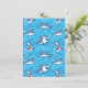 Cartoon, Great White Sharks in shades of blue and white swim under the sea on a pattern of flowing waves. Shark fans are sure to enjoy this funny design on an variety of custom party supplies and gift wrapping!