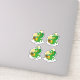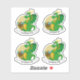 Set of four cut vinyl stickers with an illustration of a cute green dragon guarding a treasure; fantasy animal cartoon motives for kids; with custom text template for your child's name or custom message