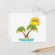 -Cartoon Island With Two Palm Tree And Cartoon Sun Postcard