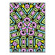 An attractive abstract kaleidoscopic design in pink, light blue, yellow and light green. Card is pale yellow inside (customisable) and left blank for your message.