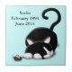 Cartoon of a black and white kitty asleep with it's toy mouse. Fun and sure to bring a smile whenever you see it. Customisable text and background colour.