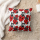 Cute throw pillow for the kid's bedroom or nursery, printed with a pattern of cartoon Ladybugs.