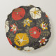 cartoon leaves and flowers on a dark background in round cushion