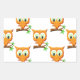 Cartoon Little Owl On Branch Pattern Rectangular Sticker