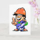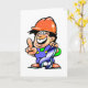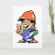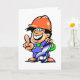 This design is a cartoon man in a hard hat. The man is a construction worker wearing a hard hat. This cartoon man in a hard hat design looks great on this Greeting Cards
