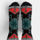This funky mandala design features blue, red, and black in a cartoon style. Trippy geometric visuals for the modern hippie or lover of vibrant colours!