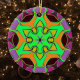 This funky mandala flower design features green, orange, and purple in a cartoon style. Trippy geometric visuals for the modern hippie or lover of vibrant colors!