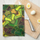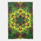 Cartoon Mandala Flower Green Yellow and Orange Tea Towel