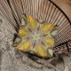 This funky mandala flower design features yellow, grey, and red in a cartoon style. Trippy geometric visuals for the modern hippie or lover of vibrant colours!