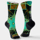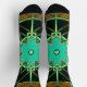 Cartoon Mandala Green Black and Yellow Socks