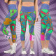 Cartoon Mandala Green Red and Blue Capri Leggings