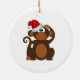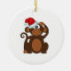 A cartoon monkey in a Santa hat decorates this cute Christmas ornament