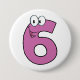 Cartoon Number 6 Fun Purple Smiling Six 7.5 Cm Round Badge