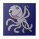 Cartoon illustration of an octopus on a blue tile. Change the background colour!