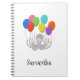 Funny cartoony Octopus smiles and holds eight colourful balloons in each tentacle. Nice and cute Back to School gift. Personalise your name on the front of the Notebook.