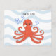 A cartoon octopus with a cute face set against a wavy ocean backdrop, surrounded by ocean bubbles, and accompanied by the words 'thank you.' can be changed as desired.