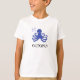 A cute cartoon octopus with a sweet face. Ocean bubbles around him.