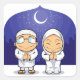 Cartoon of Muslim Man Woman Greeting Ramadan Square Sticker