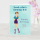 A birthday greeting card with a cartoon illustration of a party girl holding a cocktail. Set on a mint green watercolor background. Message inside can be customised or left as is.