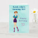 Cartoon Party Girl Holding Drink Happy Birthday Card