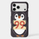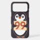 An adorable cartoon penguin is depicted holding a sign with the number 99. The design is simple and playful.