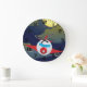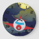 Cartoon Red Aeroplane Flying In Night Sky Large Clock