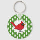 Cartoon Red Cardinal on Green White Pines Pattern Key Ring