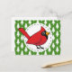 Cartoon Red Cardinal on Green White Pines Pattern Postcard