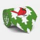 Cartoon Red Cardinal on Green White Pines Pattern Tie