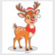 Adorable cartoon illustration of a reindeer wearing a festive Santa hat and scarf. Perfect artwork for Christmas and holiday-themed designs, decorations, and seasonal greetings with a cheerful and joyful mood.