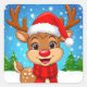 Cartoon Reindeer With Santa Hat Square Sticker
