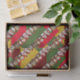 Rows of cute cartoon Santas from all over the world on a brightly coloured geometric background ready for adding that special touch to your gifts! Background colour can be modified. Original illustration by Linda Becker.